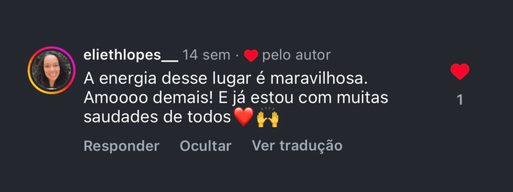 Por fim, durante um ícaro, senti a presença de um caboclo amigo. Ele me pediu que mantivesse a coluna ereta e a cabeça erguida — firme e suave ao mesmo tempo. Disse que essa postura deveria me acompanhar na vida, como uma guerreira diante dos desafios.”