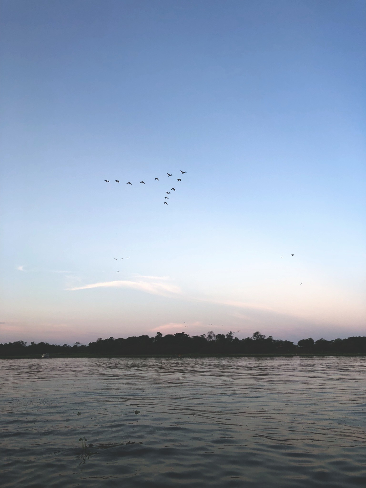 Durante o retiro, o grupo realiza um passeio de barco pela lagoa Yarinacocha e pelo rio Ucayali, navegando por paisagens amplas, cheias de vida e silêncio. Ao longo do trajeto, há a possibilidade de avistar golfinhos e botos amazônicos, que costumam aparecer nas águas da região.